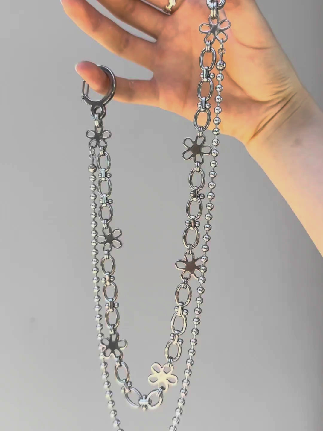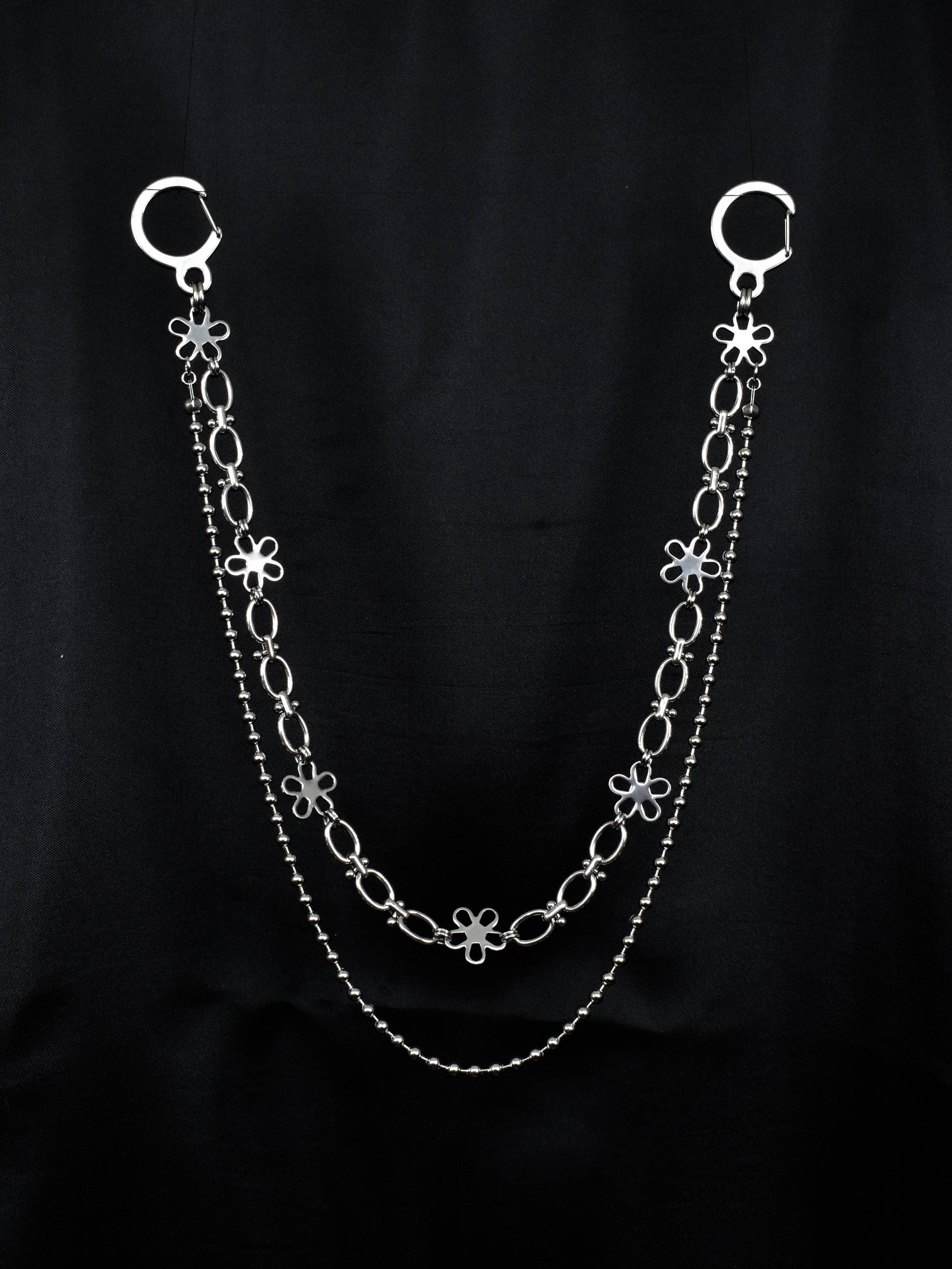 This layered wallet chain features flowers lining a chunky chain with a bubble chain layered below. ❀ It’s cute and groovy with a grunge edge, and is perfect for a multitude of looks.