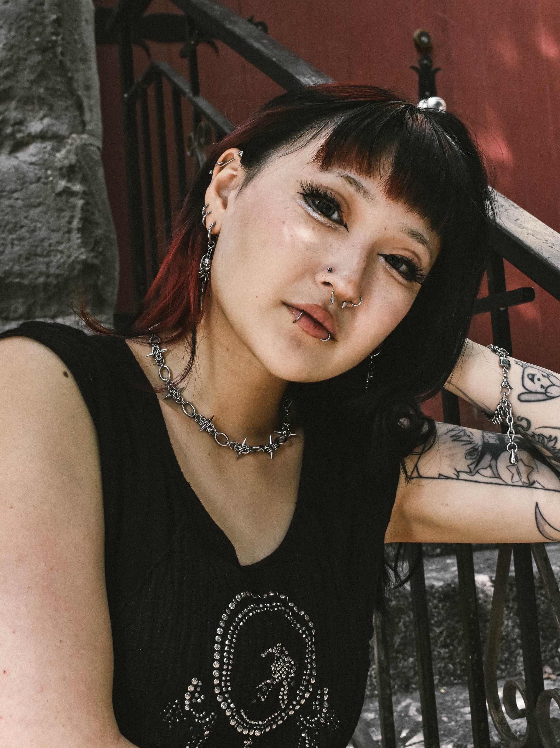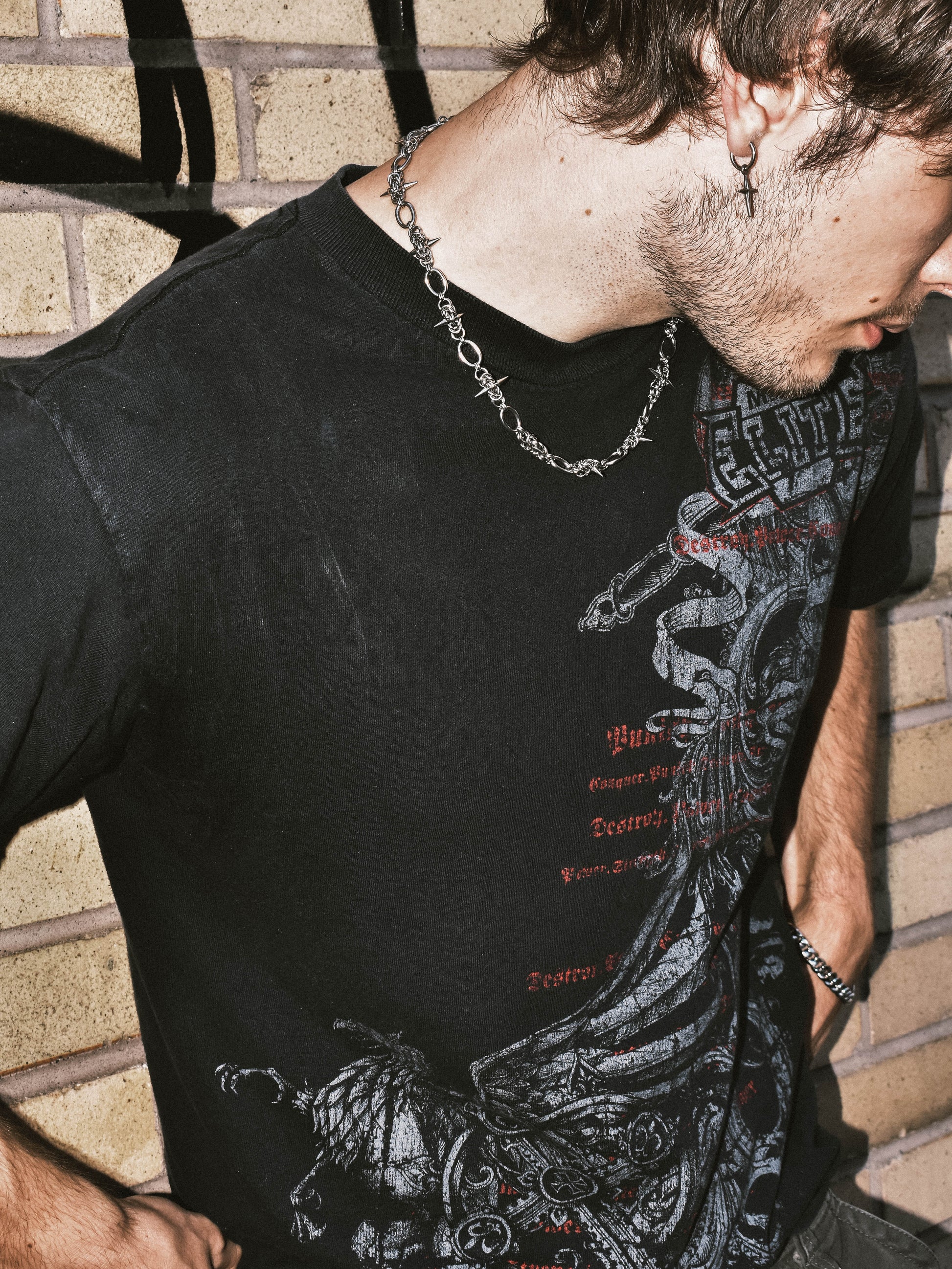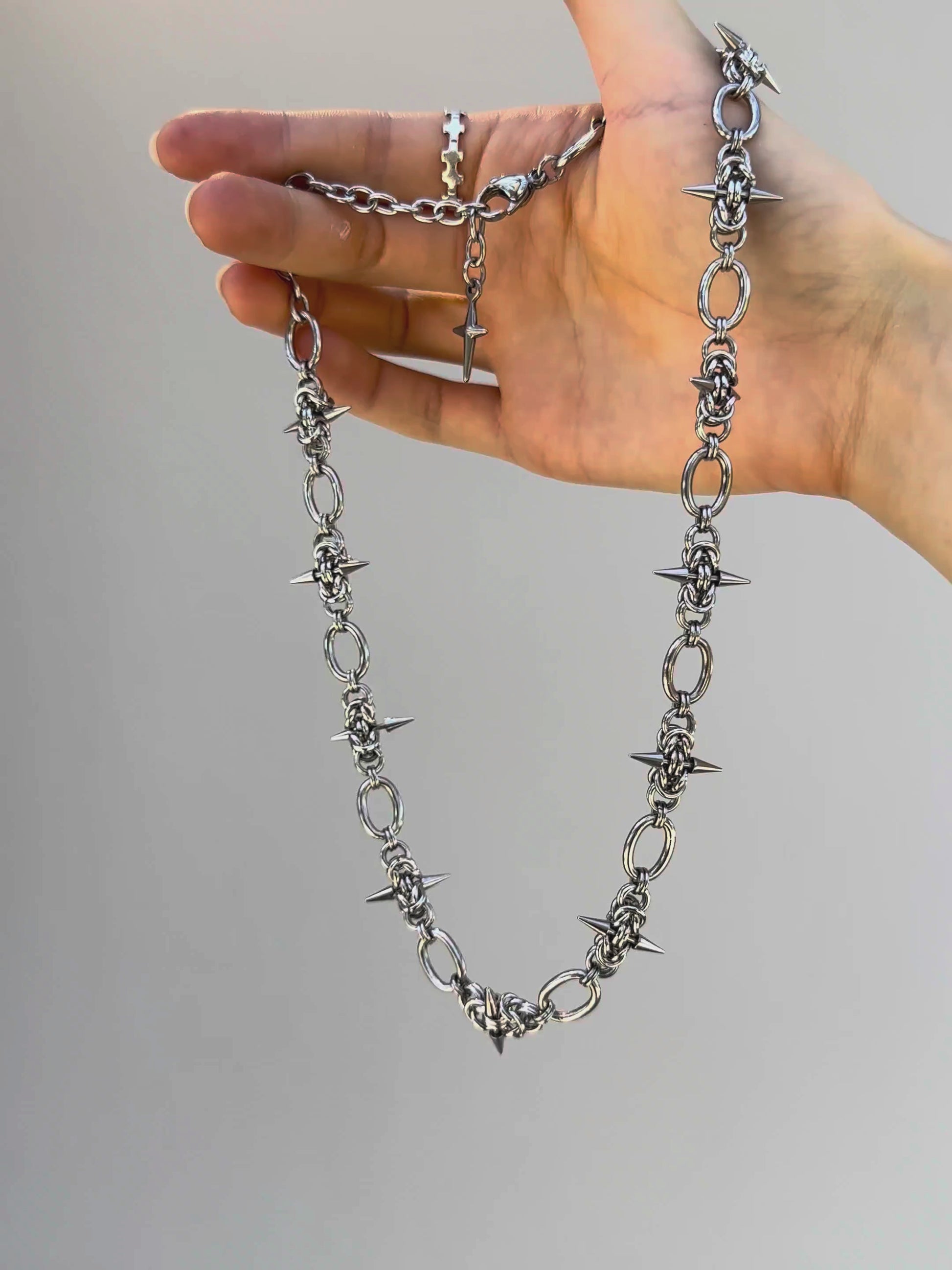 This punk rock necklace features stunning chainmaille and repurposed barbell piercings. The Hellhound Chain is gothic, unique, and its androgynous nature makes it the perfect piece for masculine, feminine, or any looks in between.