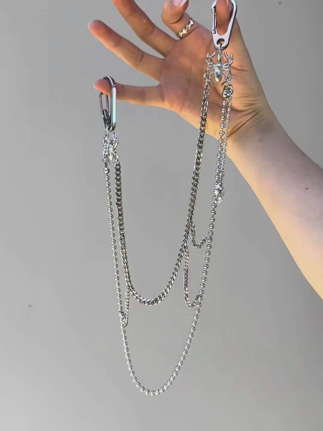 This one-of-a-kind wallet chain features spider charms and layered chains designed to resemble a spider web.🕸️ It's gothic, unique, and it's androgynous nature makes it the perfect piece for masculine, feminine, or any look in between.
